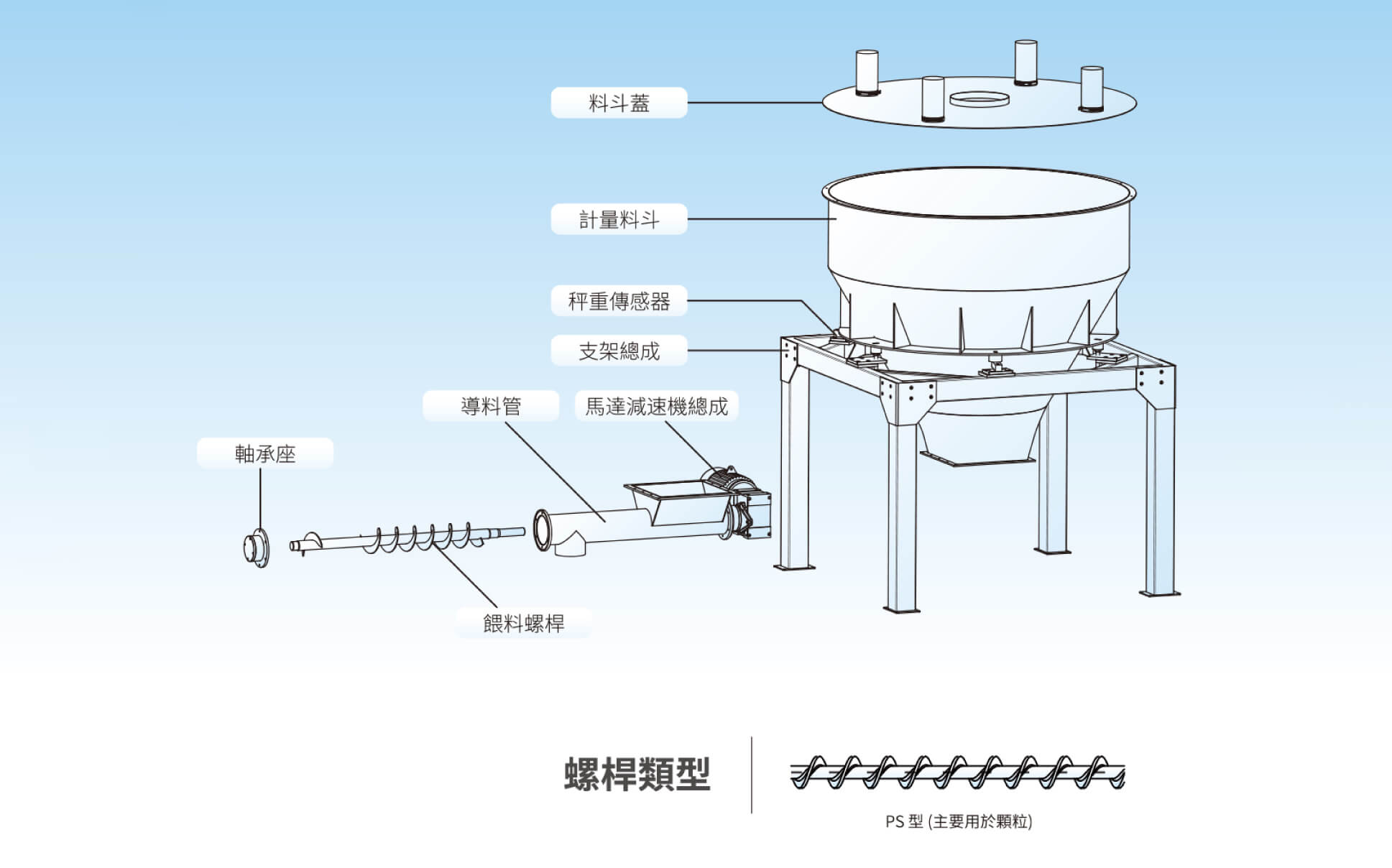 - 最大流量可達10000kg/h(物料堆積密度維0.5kg/L)